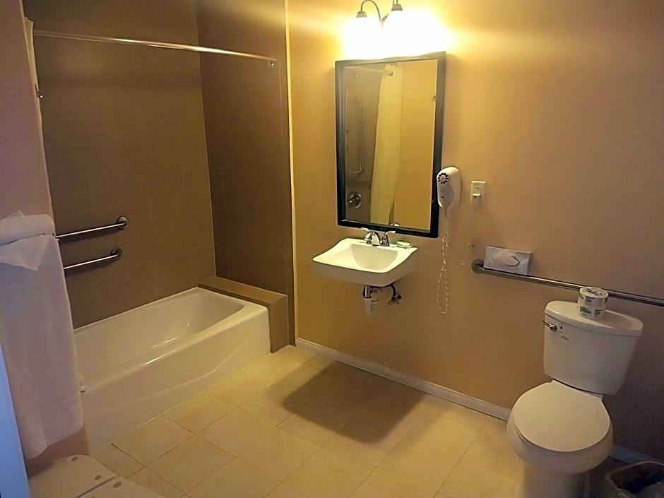A flat-screen TV, refrigerator, microwave, private bathroom and separate spa bath are included in this room.